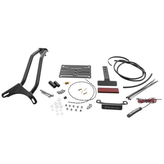 Lorsque ce support de plaque d’immatriculation est fixé à la R ou RS, il se combine particulièrement bien avec notre habillage arrière 44810-000 et les clignotants supplémentaires (voir Accessoires) pour "arranger" de façon superbe le disgracieux arrière d'origine.