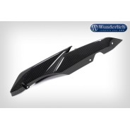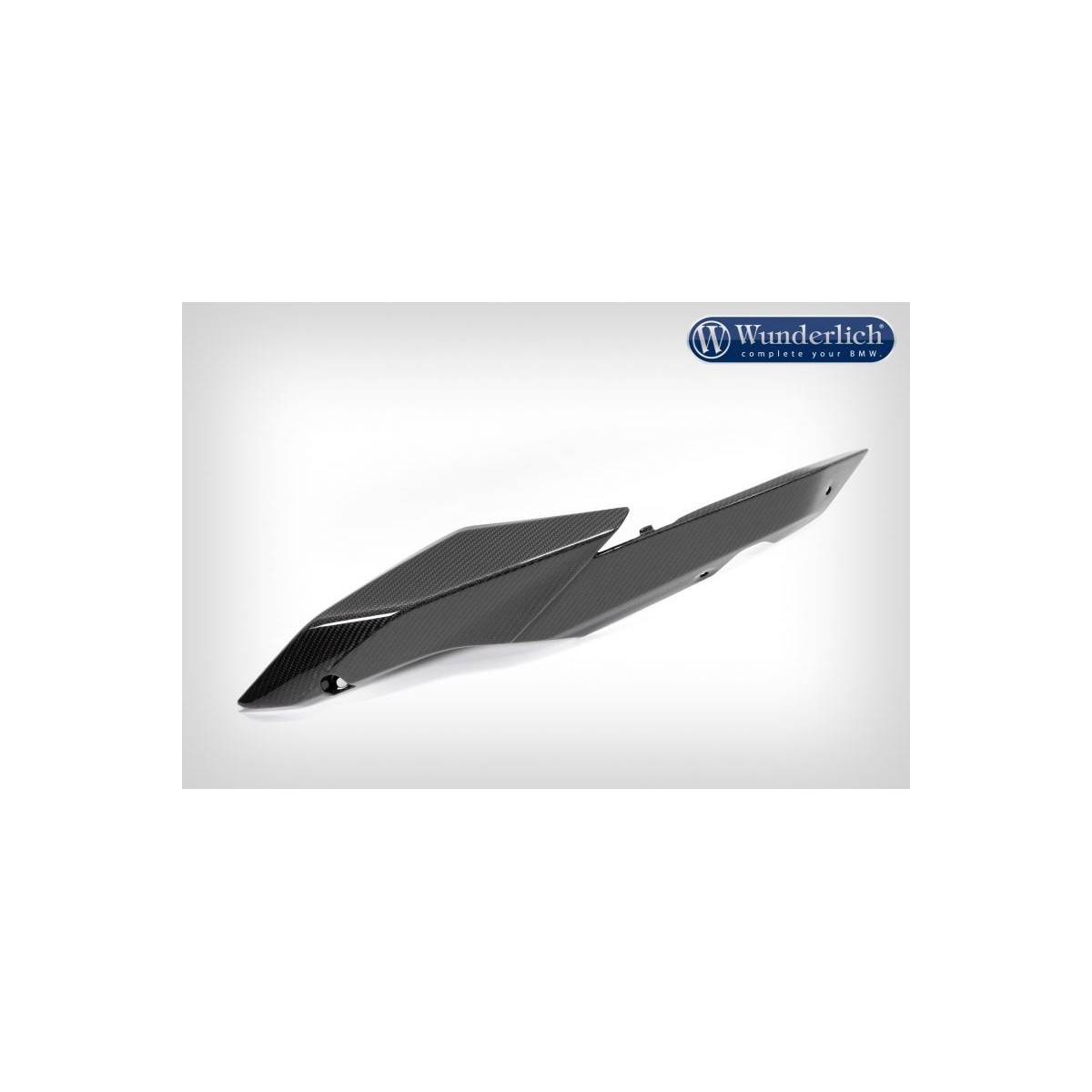 Le matériau aérospatial génère un gain de poids pouvant atteindre 70% par rapport à une pièce de série, et, avec sa rigidité spécifique au poids, exploite tout son potentiel. La forme suit en outre à chaque fois la fonction et s'intègre optimalement dans le design de la moto. Parallèlement, les lignes de la machine en objet sont prises en compte, de même que le matériau et la texture de surface des composants de série attenants. Ce composant en carbone souligne la prétention high-tech de votre BMW avec l'aspect unique du véritable carbone.
