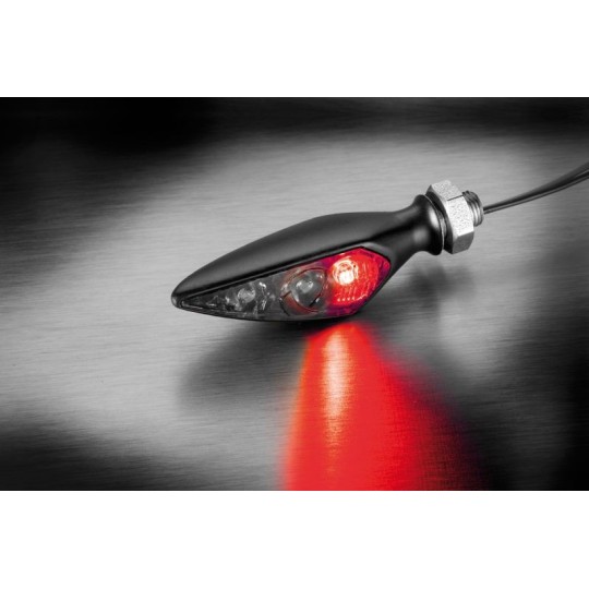 Le boîtier compact du Rhombus S DF Dark abrite à la fois le clignotant et le feu arrière et le feu stop et offre ainsi une possibilité idéale de réduction de poids sur la moto. Convient à tous les types de motos.*